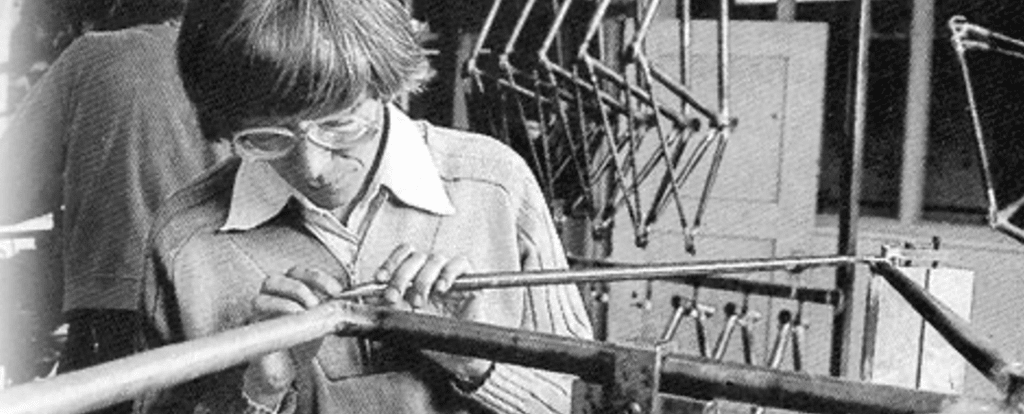 Bicycling was continuing to call me. Not that I wanted to ride all the time; I just wanted to feel like I was riding. I have a degree in mechanical engineering. I have some imagination (heck, I had a control panel from the Enterprise’s bridge in my bedroom in 1956–it controlled every function in our house). What to do, what to do? I didn’t know. I just knew I had to know more about the bicycle. Not the components, the frame. The metallurgy, the construction, the flame that made it a reality.