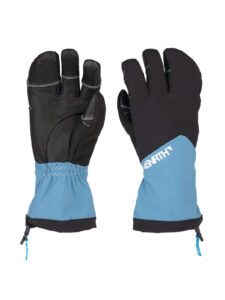 Half glove, half mitten “lobster claw” styling with windproofing, water-resistance, breathability, fleecy insulation and excellent padding.